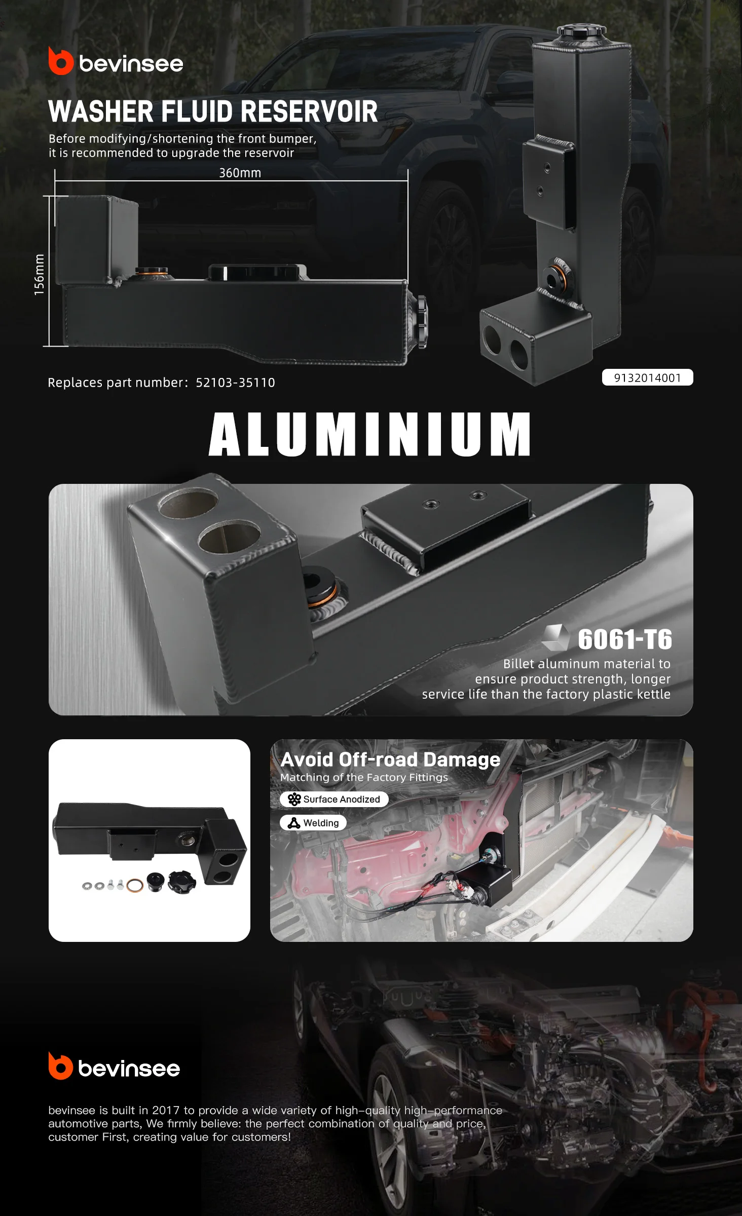Aluminium Car Washer Fluid Reservoir Replacement, for Toyota 4Runner 2014-2024