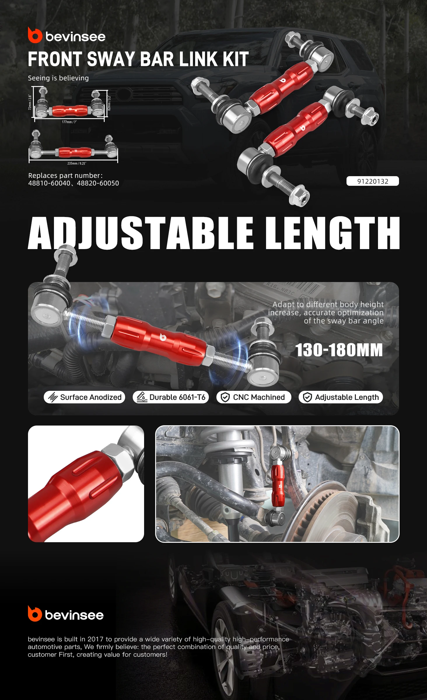 【Adjustable Sway Bar Linkage】130-180mm adjustable length, the original only 140mm, adapt to different body height increase, accurate optimization of the sway bar angle.