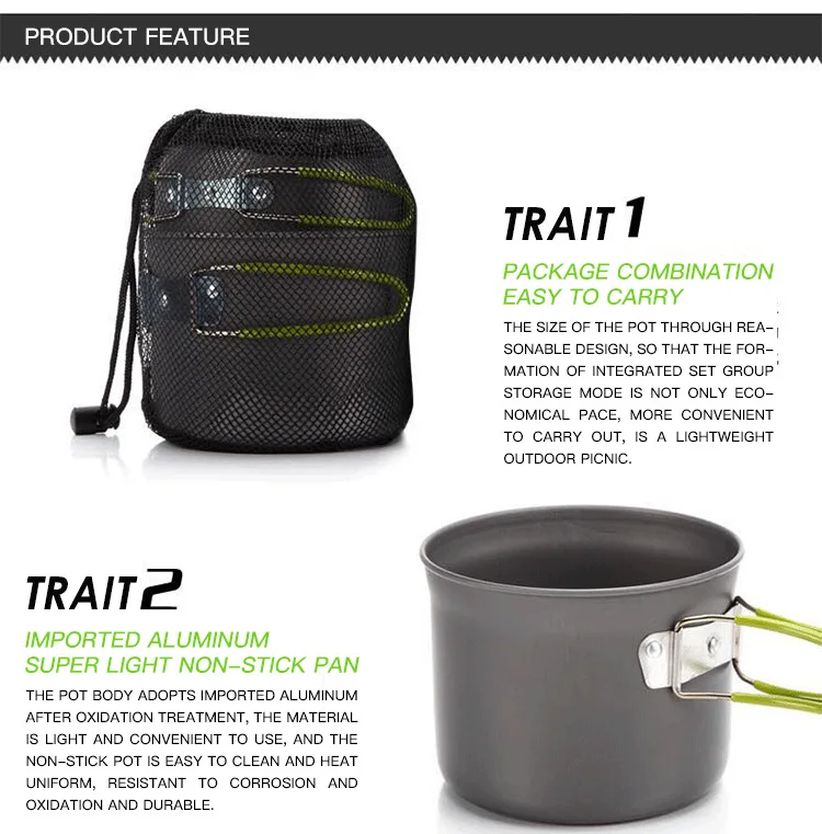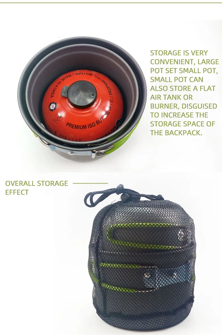 Introducing the Camping Cookware Set, the perfect addition to your outdoor adventures! Made with imported advanced hard aluminum oxide material and a thickness of 0.7MM, this cookware set is highly durable and resistant to wear and tear.