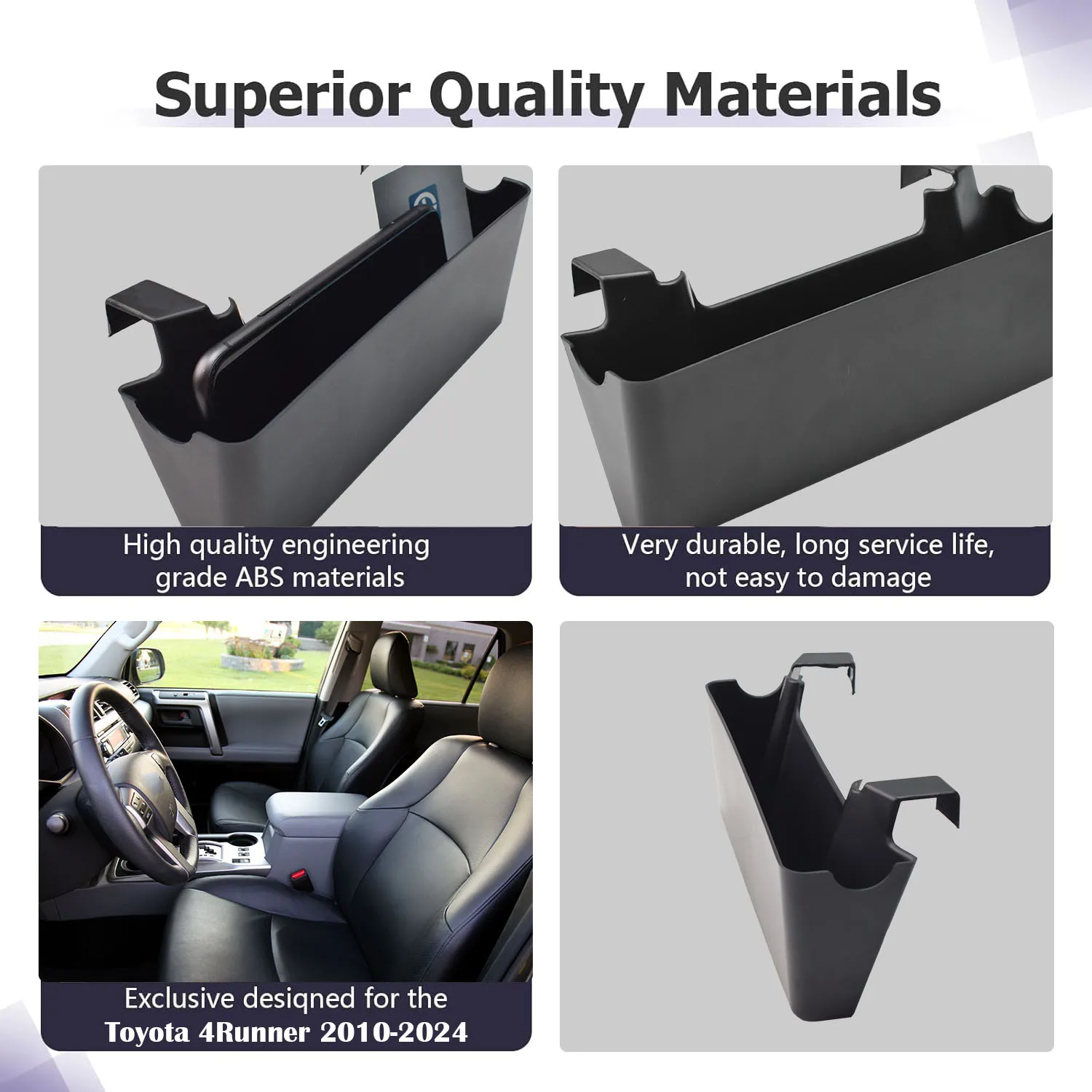 Sturdy & Secure: Made from durable ABS plastic. Features non-slip mats to keep items from moving and to minimize noise while driving