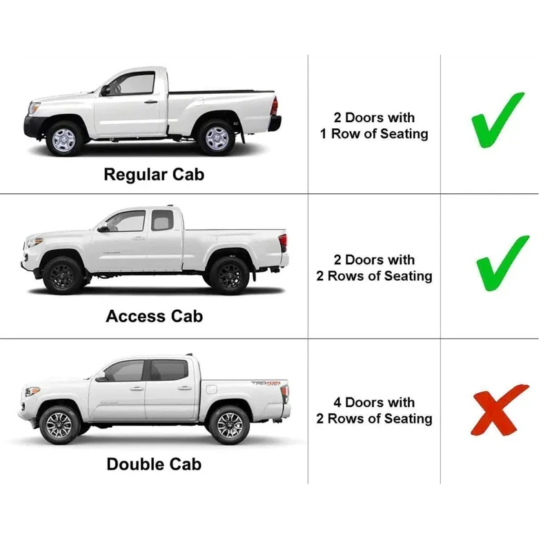 - Fits Toyota Tacoma 2016-2023 SR 2-Door regular or access cab ONLY (not for 4-Door Double Cab)