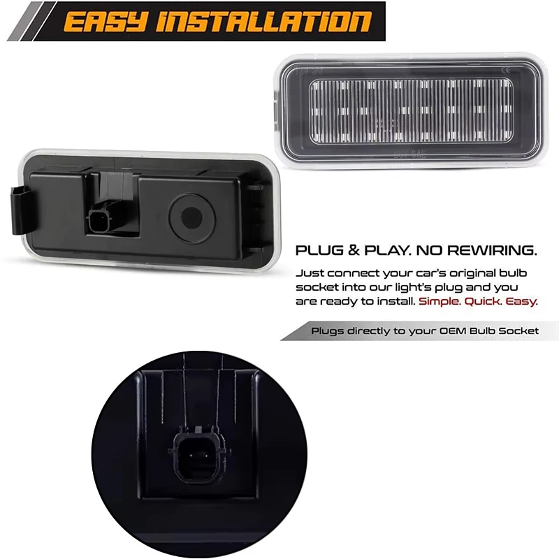 The lights are direct replacements for the OEM bed lamps (PT857-35200 / 84267-0C020 / 90080-87026) and use a plug-and-play design for quick installation. A built-in CANBUS controller ensures an error-free setup with no dashboard warnings.